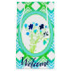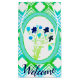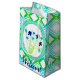 Con ocasión especial, la bolsa de regalo de bienvenida con un diseño floral azul marino acentuado en fondo verde azulado y verde limón, blanco puede cambiarse a cualquier color, y el texto de bienvenida puede ser personalizado a cualquier mensaje o texto es extraíble.