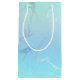 Presenta un diseño de mármol en tonos verdes y turquesa.