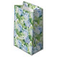 Esta bolsa de papel de pequeño tamaño se muestra en una hermosa huella floral de horangea azul. Personalizar esta bolsa de regalo o compre como está. Imprimir con licencia