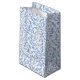 Esta bolsa de regalo de ocasión se muestra en una hermosa impresión floral azul. Tamaño pequeño mostrado