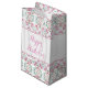 Personalice el texto de feliz cumpleaños a cualquier ocasión especial en esta pequeña bolsa de regalo decorativa de papel de color blanco con acento verde azulado y rosa. El texto también se puede eliminar si lo prefiere, y el fondo blanco se puede cambiar a cualquier color para complementar su estilo.