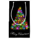 Esta bolsa de regalo de Navidad se muestra con una estampada festiva de árbol de Navidad. Personalizar este artículo o compra tal cual.