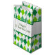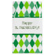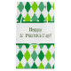 Este patrón de diamante verde y blanco tiene una banda ancha blanca envuelta alrededor del centro. El texto dice "Feliz Día de San Patricio" y puede ser personalizado.