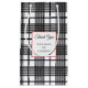 Una bolsa de regalo editable para pequeñas empresas o fiestas con letras decorativas y en script sobre un marco cuadrado en rojo en un patrón de cuadros escoceses horizontales inspirado en glen en negro y blanco con rayas finas.