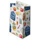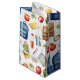 Los lápices, manzanas, reglas, mochilas, libros de notas, etc. están esparcidos por esta bolsa que podría ser usada para un regalo de apreciación del profesor, un regalo de regreso a la escuela o un regalo de graduación.