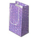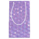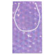 Presenta un diseño de patrones geométricos iridiscente rosa y púrpura.