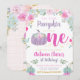 ¡Celebra el mágico primer cumpleaños de tu calabaza pequeña con esta bella invitación! Floral acuarela, calabazas y acentos purpurinas de imitación de oro (sin purpurina desordenado), esta invitación marcará un tema maravilloso para el gran día de este otoño.