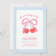 ¿Acoger una cereza en la fiesta de cumpleaños? ¡Esta encantadora invitación a la cereza hecha a mano es perfecta para una celebración de verano inspirada en la coqueta! Con cintas dulces, arcos y cerezas vibrantes, esta plantilla imprimible y editable le permite crear una impresionante invitación en minutos. 🍒 #CherryParty #BirthdayInvite #CoquetteAesthetic #DIYParty #PrintableInvitation