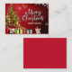 Colorida tarjeta de felicitación navideña roja y verde con documentos y regalos