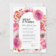Haz que tu ducha de boda sea especial con este hermoso "Consejo de ducha de boda floral rosa brillante para la tarjeta de novia y de Groom". Esta tarjeta presenta impresionantes ilustraciones florales en colores vivos y en tonos rosa brillante, perfectos para añadir un toque de elegancia y romanticismo a su ocasión especial. Con un espacio para que los huéspedes compartan sus más sentidos consejos y buenos deseos, esta carta es una maravilla para que la pareja feliz la aprecie en los años venideros. Ya sea que esté buscando un regalo único para la ducha de boda o una encantadora adición a su propia celebración, esta tarjeta seguramente causará una impresión duradera.