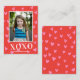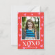 Esta moderna y dulce tarjeta de foto de San Valentín presenta un patrón de fondo de corazones rosados en un fondo rojo, XOXO a gran escala y una foto vertical. La parte posterior de la tarjeta tiene el mismo fondo de patrón de corazón, que se puede quitar si se desea. También puede añadir otra foto a la parte posterior y/o texto adicional a la parte posterior. ¡Este pequeño tamaño es perfecto para los intercambios de San Valentín en aula!