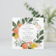 ¡Hay una pequeña corbata en camino! Esta divertida invitación a bañarse en una ducha con temática cítrica cuenta con una cortina de naranjas verdes con acuarela y limones con flores azules y rosas para mantener la neutralidad de género. Personalice su información o haga clic en "Haga clic en el personalizar más adelante" para editar estilos de fuente, tamaño y colores.