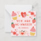 Esta moderna y dulce tarjeta de foto El día de San Valentín en clase presenta un fondo rosa pálido con bonitos ilustraciones de quequitos, fresas, corazones, etc, etc. El saludo en el frente dice "¡eres tan dulce!" La parte posterior de la tarjeta tiene el mismo fondo rosa pálido y una foto cuadrada, que también se puede retirar si se desea. ¡Este pequeño tamaño es perfecto para los intercambios de San Valentín en aula!