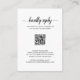 Tarjeta Mini RSVP simple de Boda blanco y negro con las palabras "amablemente contesta" en un guión elegante con guiones. A continuación, su código QR e instrucciones. La parte de atrás tiene tu foto favorita. Esta moderna y minimalista tarjeta RSVP se coordina con cualquier tipo de suite de invitados a la boda.
