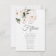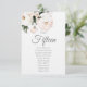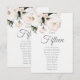 Delicadas rosas blancas en la parte superior izquierda de esta elegante tarjeta de asignación de mesa. Tipografía gris personalizable para el nombre o número de la mesa y para la lista de invitados.