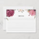Pequeña Elegante tarjeta de recetas de Borgoña y Boda Rosa