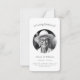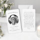 Simple y elegante tarjeta de oración para el funeral y el funeral de un ser querido. El frente presenta "In Loving Memory of" y "eternamente in our heart" en una mezcla de tipografía y escritura. Personaliza con su foto, nombre, fecha de nacimiento y muerte. En el reverso aparece un largo pasaje inspirador ("Llene sus corazones con dolor") y un mensaje más corto, o un personalizar propio