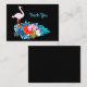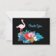 tarjeta de agradecimiento con imagen de flamingo y flor tropical