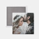 Esta simple boda fotográfica de moda, salvo la fecha en que el imán frigorífico tiene un diseño cálido y minimalista. Presenta un moderno y animado texto Guardar la fecha por encima de sus nombres y fecha y ubicación boda. Esta secuencia de comandos Guardar la fecha no se puede modificar. Puede cambiar el color, el tamaño y el tipo de letra de cualquiera de los demás textos. Utilice las herramientas de diseño intuitivo y su foto favorita para que esta elegante boda ahorre el imán de fecha que es único suyo. También ofrecemos un diseño similar en este tipo de imán sin la ubicación del boda, para un aspecto más sencillo. Y por favor revise nuestra tienda para este diseño en tarjetas planas y postales, así como una selección de otros modernos y elegantes, ¡salven las fechas!