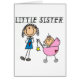 Un diseño adorable de la pequeña hermana en las camisetas de la pequeña hermana, los monos, las camisetas largas de la manga, las tazas, las tarjetas, los pegatinas, los bolsos, y más con una figura del palillo de la hermana grande/de la pequeña hermana y la línea del estilo del niño gobernó el texto que lee a la "pequeña hermana".