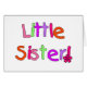 Camisetas de la pequeña hermana, monos, tarjetas, las bolsas de asas, y otros artículos de la pequeña hermana con el texto brillante de los multicolors.