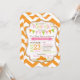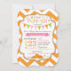 Fondo de impresión de chevron Naranja y blanco con guarnecido purpurina dorado y banner de confección de mosaicos y calabazas de otoño diseño de tarjeta de invitación a la ducha de bebé. Para la niña.