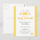 ¡Traiga un toque de sol a sus invitaciones a la ducha de bebé con esta encantadora invitación! Texto: "Esperando un pequeño milagro". Presenta un sol y estrellas personalizados y una combinación de colores vivos amarillos y naranjas con una tipografía de escritura elegante. Este diseño moderno es fácil de personalizar con los detalles fiestas.