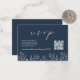 Boda RSVP Código QR tarjeta de gabinete comodín, floral en azul marino El texto puede ser simplemente personalizado con su sitio web boda, escaneado código QR, y mensaje que mantendrá a sus invitados informados sobre su próximo día especial.