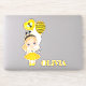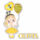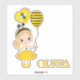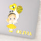 Este pegatina de Bee chica está pintado en colores amarillos, negros y blancos. El pegatina está diseñado con una linda, rubia, niña pequeña vestida con el estilo de la abeja, con la banda de la cabeza con la antena de la abeja, sosteniendo globos de aire. También puede personalizar el nombre.