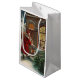 Pequeña Papá Noel en la bolsa de regalo de la puerta