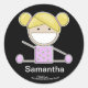 ¡La pequeña chica de pelo rubio en pigtails sigue en forma haciendo sus estiramientos! Diseño original de Christie Black de Creations from the Heart.