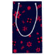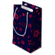 Pequeño papel de regalo azul oscuro y rojo Bolsa con estrellas pequeñas y flores de estilo geométrico para Año Nuevo o Navidades