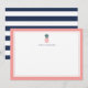 Nuestras tarjetas planas personalizadas de papel de moda cuentan con un borde rosa claro, un ilustracion de piña tropical verde y rosa, y su nombre, monograma o elección de personalización. Las tarjetas cambian a anchas rayas azul marino y blanco para obtener un aspecto de moda preppy.