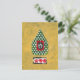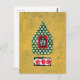 Pequeño tulipán lindo sobre una forma verde polka punto con acento floral debajo - todo sobre un fondo amarillo texturado.