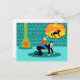 ¡Yeehaw! Usted estará listo para montar apagado en la puesta del sol con esta pequeña postal retra del vaquero. Características del este diseño caprichosas un estilo vibrante, de los años 60, un dibujo minimalista, del dibujo animado de un padre y su hijo joven que tiene rasgón-rugiendo, buen tiempo. La escena ocurre en su sala de estar moderna de los mediados de siglo, que tiene un piso de la aguamarina y una pared de los ladrillos del trullo y de la aguamarina. El joven camorrista está llevando una camisa roja, tejanos, y botas de vaquero marrones. Ése es el traje perfecto para conseguir hace para creer paseo trasero de caballo de su padre indulgente. El papá aparece apenas haber llegado a casa después de un día largo la oficina. Él está llevando un juego negro, una camisa de vestir blanca, y un lazo rojo. Él todavía tiene la energía a arrastrarse alrededor del cuarto en todos los fours, mientras que su vaquero rubio preferido goza el montar de la gama. Pero el cowpoke joven tiene su mente en otra hora y lugar. Con la ayuda de una burbuja del pensamiento, podemos ver exactamente cuál está en la mente del joven. Él se está previendo montar a caballo a través de un desierto amarillo y anaranjado en un semental liso, negro. El vaquero de su mente está llevando a un vaquero marrón tuvo que protegerlo contra el sol que se chamusca. Detrás de él es un cactus verde, que es misterioso evocador de la parte posterior verde de la chimenea del cono en su propio domicilio familiar. Me imagino que el caballo y el jinete están trabajando encima de un apetito real para la cena en un carro de tirada. ¿Dónde está la mamá con esa campana de cena?