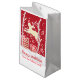 Muestra tu aprecio a tu familia o amigos este año con esta bolsa de regalo personalizada de reno rojo. Perfecto para llenar con un regalo especial o regalos a la hora del Navidad. Navidades festivos festejan renos bailando sobre regalos de Navidades en el diseño de nieve. Personalizar / personaliza estas bolsas de regalo de Navidades con su propio nombre y un mensaje o agradecimiento de temporada. Actualmente se lee Felices fiestas de la familia Dickson. Arte y diseño únicos por Sarah Trett.