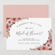 Elegante tarjeta de presentación de la fiesta de la doncella de honor con magníficas flores y follaje pintados a mano en un rincón acuático con rosa de color negro y polvoriento, dorado rosa y tonos sabios. Uso de escritura a mano moderna Script y tipografía de bloques. Atrás de la carta en romántico tono rosa rubor. También están disponibles las demás tarjetas de presentación de la fiesta nupcial. Parte de nuestro boda "Heaven in Rosa" y colección de eventos.
