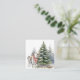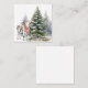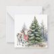 Esta tarjeta sería una pequeña tarjeta adorable para cualquiera en su lista de regalos de vacaciones. Ternero lindo que lleva una bufanda y está parado frente al árbol de Navidad.