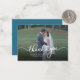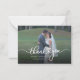 Una manera grandiosa y reflexiva de agradecer a tus amigos, familia y compañeros de trabajo que te honraron con su presencia en tu día de boda con esta moderna tarjeta de agradecimiento por tu foto con la mano de guion escrita con "gracias" y un diseño de corazón de amor.