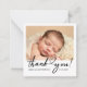 Tarjeta de nota de agradecimiento con diseño moderno y elegante. El diseño frontal incluye espacio para los campos de foto y personalizable para el nombre y la fecha, creando un toque personal. La parte posterior personaliza fácilmente tu mensaje para agradecer a tus invitados con estilo. Esta tarjeta de notas moderna es perfecta para celebrar cualquier hito con estilo.