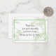 Una tarjeta de agradecimiento de simpatía con sentido común con un delicado diseño de hojas de bambú verde claro en el fondo. El mensaje, escrito con una elegante letra escrita a mano, dice: "Gracias por su simpatía y amables palabras durante mi época de pérdida". El texto está enmarcado por una simple frontera verde, que transmite calidez, gratitud y consuelo en tiempos de duelo.