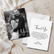 elegante tarjeta de foto en blanco y negro de agradecimiento boda tarjeta de dos caras, en el lado de atrás mensaje de agradecimiento.