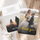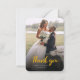 Una manera grandiosa y reflexiva de agradecer a tus amigos, familia y compañeros de trabajo que te honraron su presencia en tu día de boda con esta moderna foto tarjetas de agradecimiento con el efecto oro con letras de guion "gracias" Fotos en la parte delantera y en la inversa de esta carta