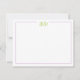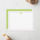 Unas iniciales monogramadas de Cute Green con una tarjeta plana de agradecimiento de borde de lavanda