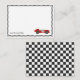 Esta tarjeta de nota personalizada presenta una vieja tarjeta de carrera roja.