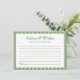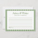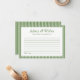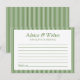 Moda fresca, moderna y sin esfuerzo, esta tarjeta de consejo de boda de rayas verdes es perfecta para captar notas sentidas de los huéspedes. Con un elegante texto en serif, una línea de nombres de personalizable y un espacio limpio y alineado para escribir, es una elegante incorporación a cualquier ducha de novia, boda en el jardín o celebración de pareja. El verde suave aporta un toque natural y relajante, mientras que la disposición lo mantiene intemporal. Un conservador refinado que a tus invitados les encantará completar, y te encantará mirar hacia atrás.