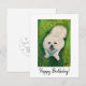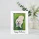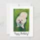 Tarjeta de cumpleaños feliz diseñada a partir de un retrato mascota de un cuadro sonriente de Coton de Tulear de Patty Hoffman. Para ingresar a su mascota en el dibujo del retrato mascota mensual del artista, inscríbase en su boletín mensual en pattyhoffman.com