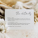 Cree su propia tarjeta personalizada de detalles minimalistas de personalizado. Simplemente introduzca su información sobre Recepción y Alojamiento. Para realizar cambios avanzados, seleccione la opción "Hacer clic para más personalizares" en Personalizar esta plantilla.