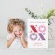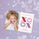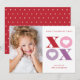 Esta foto-tarjeta de el día de San Valentín de fotografía retratada por Stacey Meacham presenta un gran tipo de xoxo alterno con corazones sobre un fondo blanco. La parte posterior de la tarjeta tiene un color coincidente que se puede quitar o escribir para agregar un mensaje personal a los amigos. Es atrevido y gráfico. Perfecto para el cliente moderno y experto.