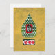 Pequeño tulipán lindo sobre una forma verde polka punto con acento floral debajo - todo sobre un fondo amarillo texturado.